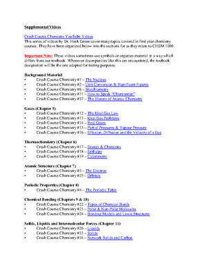 Supplemental Videos Additional Source Supplemental Videos Crash Course Chemistry Youtube Videos Studocu